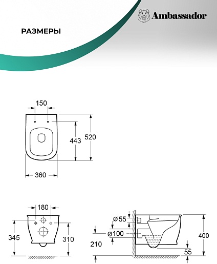 Ambassador Унитаз Royal подвесной безободковый белый с сиденьем микролифт