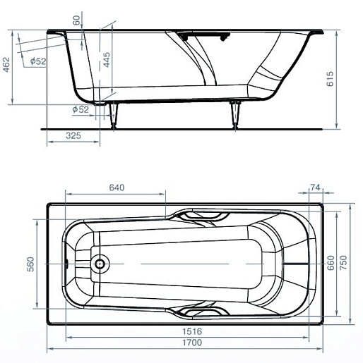 Универсал Ванна чугунная Эврика У 170x75