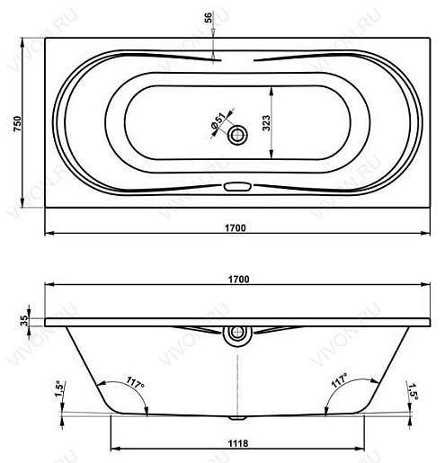 Акриловая ванна - арт. VPBA170BRI2X-04 :