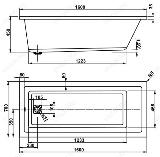 Диаметр слива: