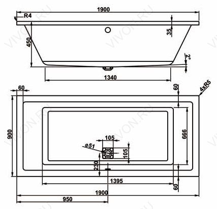 Акриловая ванна - арт. VPBA190CAV2X-04 :