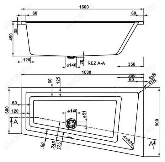 Vagnerplast Акриловая ванна CAVALLO OFFSET 160x90 R