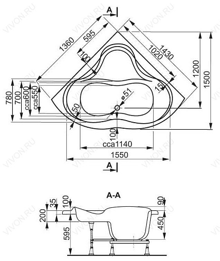 VPBA143IRI3X-04 Акриловая ванна: