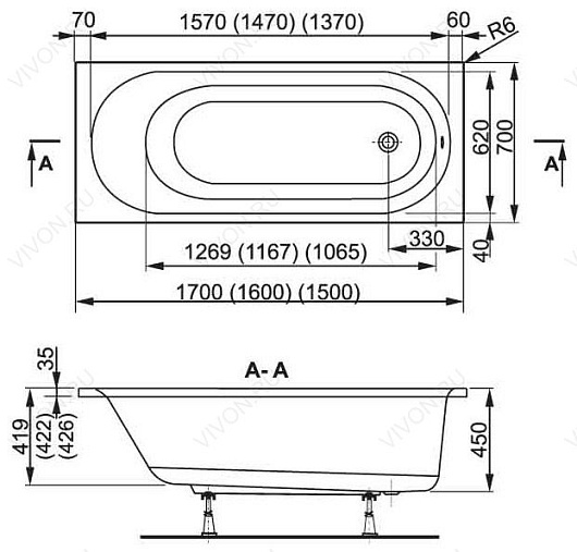 Vagnerplast Акриловая ванна Kasandra 160