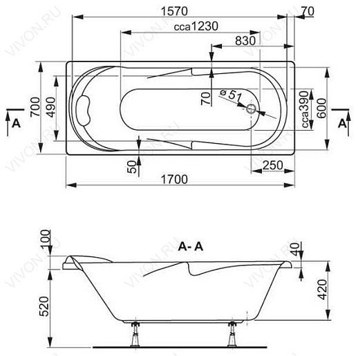 Minerva 170 – ванна из акрила в классическом исполнении, обладающая привлекательными характеристиками и таким же внешним видом. Компактные размеры (170 на 70 на 42 сантиметра при высоте на ножках 62 сантиметра) облегчают размещение в ванной: она без проблем уместится даже в малогабаритной квартире, где важен каждый сантиметр.