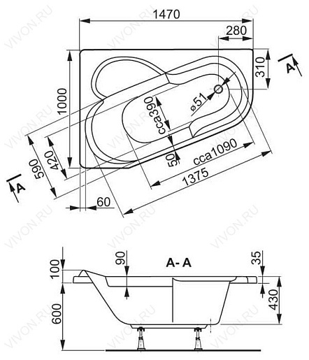 VPBA141SEL3LE-04 Акриловая ванна: