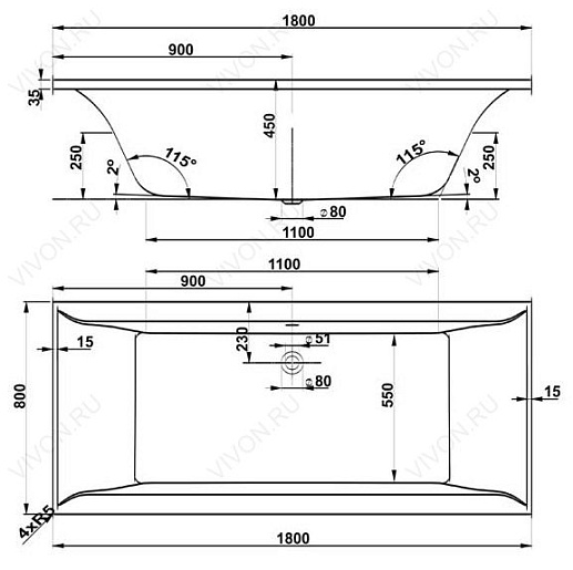 VPBA180VEA2X-04 Акриловая ванна:
