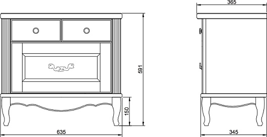 ValenHouse Комод Лиора 65 слоновая кость, фурнитура хром