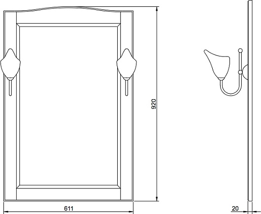 - зеркало Эллина 65: зеркало, светильники "Персей-1" золото - 2 шт., плафон "Калла" - 2 шт.