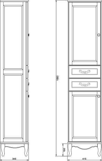 ValenHouse Пенал Эллина 40 белый L, фурнитура золото