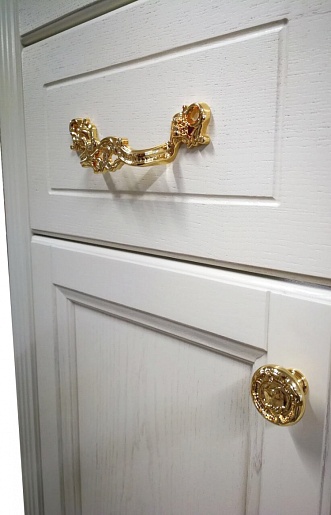 Описание: два распашных фасада, вкладные полки, два выдвижных фасада, ручки золото.