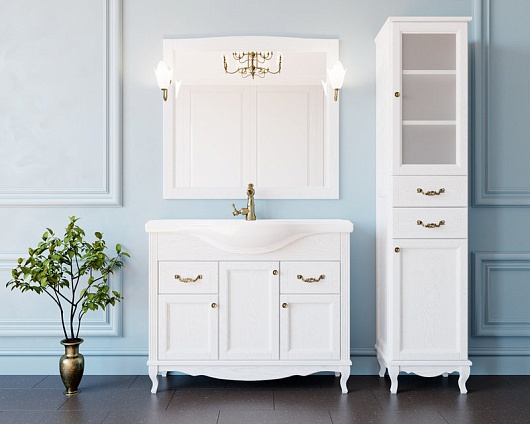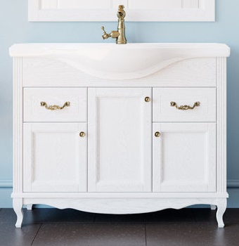 Тумба под раковину Эллина 105 белая, фурнитура бронза