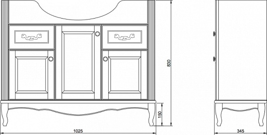 ValenHouse Тумба с раковиной Эллина 105 белая, фурнитура хром