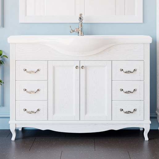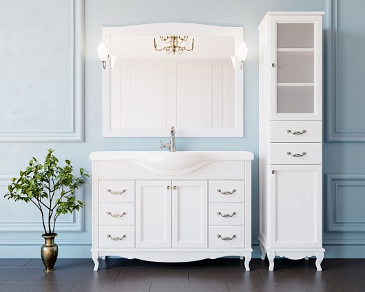 - тумба под раковину Эллина 120, массив ясеня, 2 распашных фасада, 6 ящиков, ручки хром