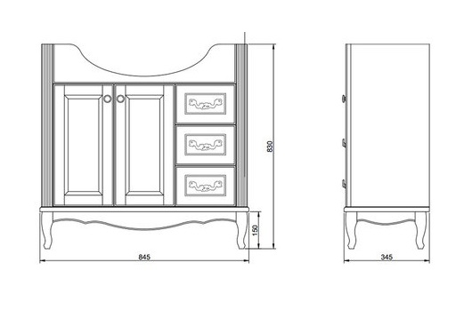 - тумба под раковину Эллина 85, массив ясеня, 2 распашных фасада, 3 ящика, ручки бронза