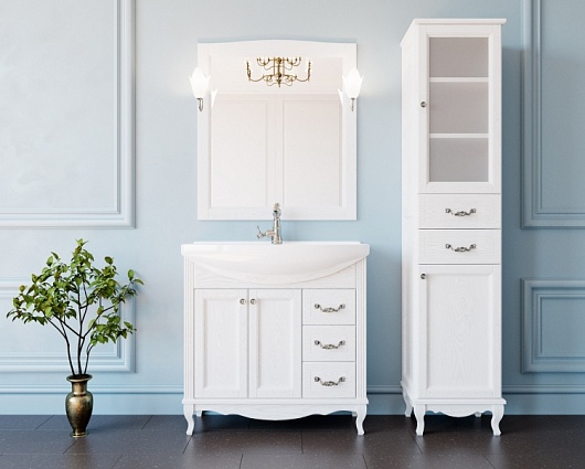 Тумба под раковину Эллина 85 белая, фурнитура хром