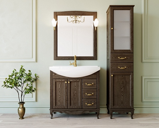 - тумба под раковину Эллина 85, массив ясеня, 2 распашных фасада, 3 ящика, ручки золото