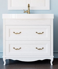 Тумба под раковину Лиора 90 белая, фурнитура бронза