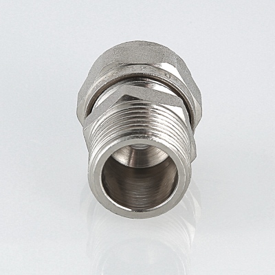 - обжимной никелированый фитинг для соединения металлопластиковых трубопроводов и труб из других материалов