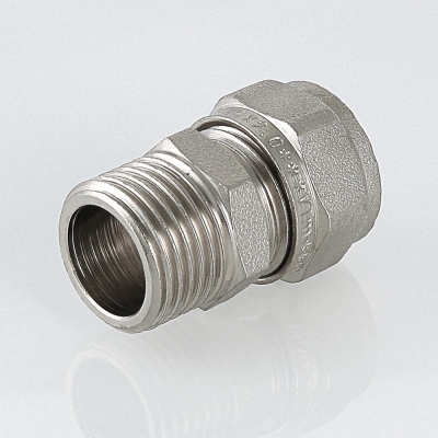 - обжимной никелированый фитинг для соединения металлопластиковых трубопроводов и труб из других материалов