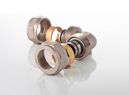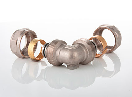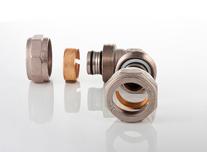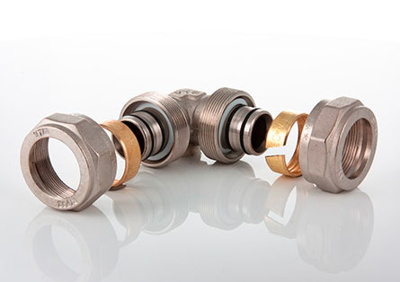 - обжимной никелированый фитинг для соединения металлопластиковых трубопроводов равного диаметра