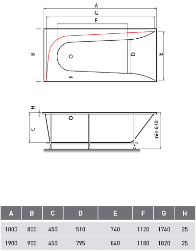 Комплектация: ванна.