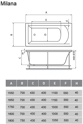Акриловая ванна Milana 155x70 - арт. Гл000024269.