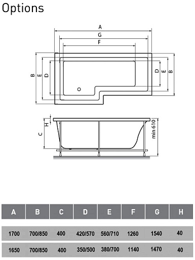 Акриловая ванна Options 165x70/85 L - арт. Гл000023294.