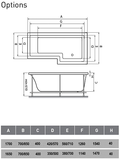 Акриловая ванна Options 170x70/85 R - арт. Гл000011191