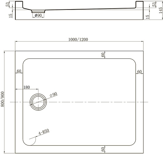 Душевой поддон Veconi Tezeo acrylic TZ-54 120x90 - TZ54-12090-C5.