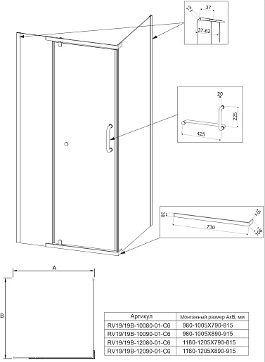 - Регулируемый размер установки: 980-1005х890-915 мм.