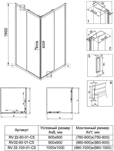 Душевой уголок Veconi Rovigo RV-22 100x100 - арт. RV22-100K-02-19C1.