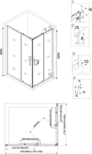 - Регулируемый размер установки: 970-990х870-890 мм.