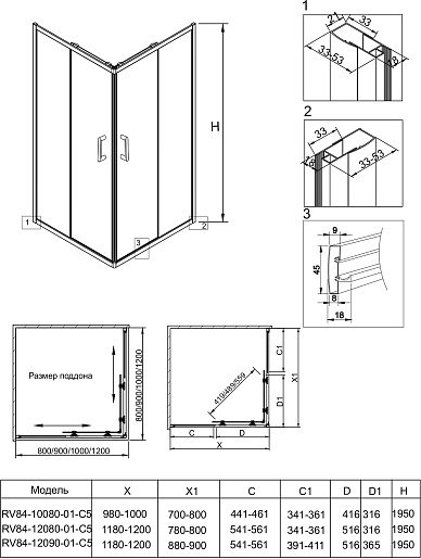 Душевой уголок Veconi Rovigo RV-84 120x80 - арт. RV84-12080-01-C5.