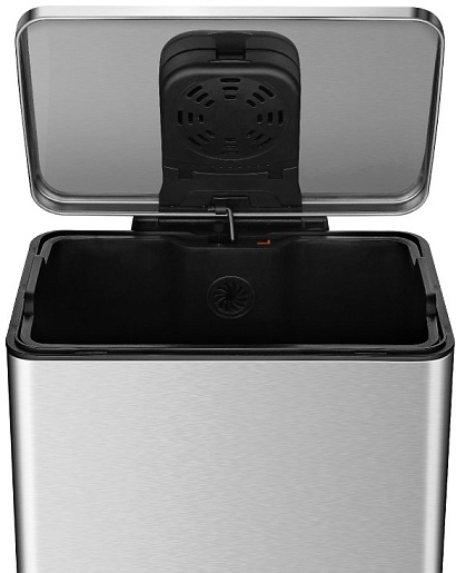 - Крышка из стали и пластика с механизмом плавного закрытия Soft Close.