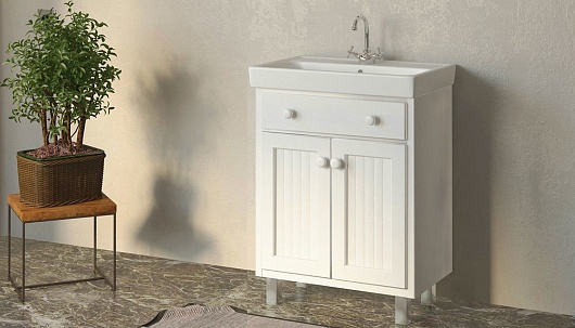 - tnALB.60-210 Тумба с раковиной Alba 60: фасад из МДФ с облицовкой ПВХ-пленкой, два распашных фасада, ящик, раковина "Мини 60" из керамики