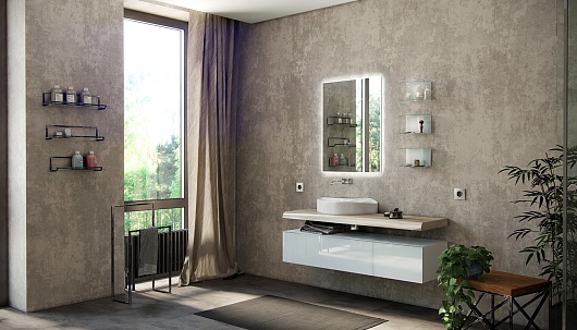 - подвесные консоли под столешницу и декоративные стеклянные кубы-полочки приобретаются отдельно.