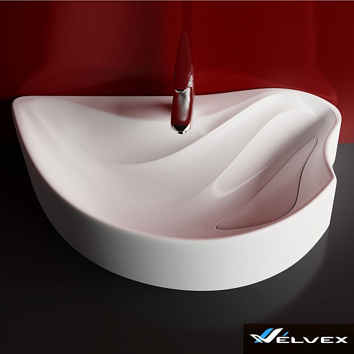 - rkFEL.60.1-81 Раковина накладная "Felay 140": модель без отверстия под смеситель, литьевой мрамор, бионическая форма.