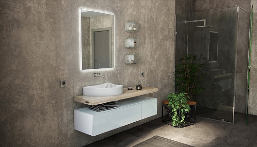 - zkFEL.65-21 Зеркало "Felay 65": зеркальное полотно, светодиодная подсветка по контуру, сенсорный выключатель.