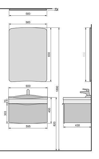 - tpIVA.60-26.21 Тумба с раковиной "IVA 60": фасад МДФ, облицованный ПВХ-пленкой, вместительный выдвижной ящик
