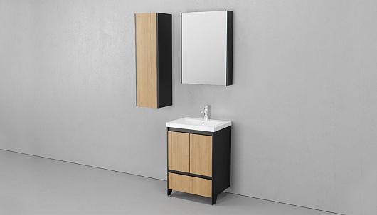 Тумба под раковину напольная Klaufs 60 черная/дерево, 1 ящик