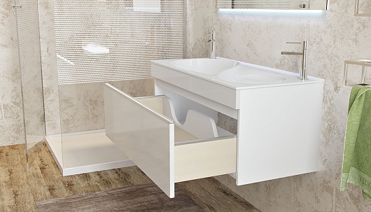 - tpOTT.100-21.11 Тумба Otto 100 с выдвижным ящиком, системой плавного закрывания Hettich, фасад - МДФ, пленка, корпус из ЛДСП. Тумба оборудована двойной раковиной из литьевого мрамора Otto 100 (арт. rkOTT.100-81).