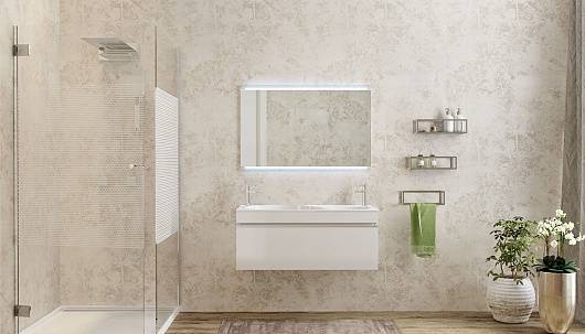 - zkOTT.100-11 Зеркало Otto 100 с декоративными стеклянными вставками и скрытой мягкой светодиодной подсветкой, выключатель.