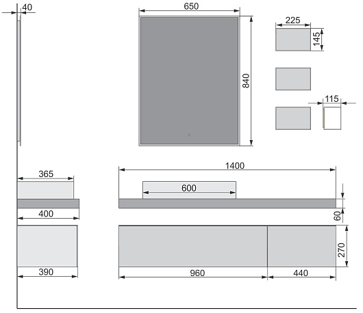 - подвесные консоли под столешницу и декоративные стеклянные кубы-полочки приобретаются отдельно.