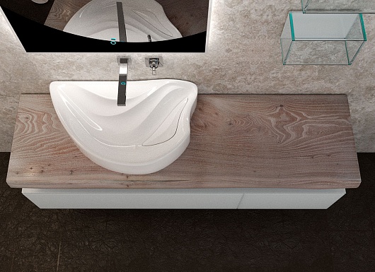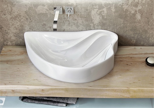 - rkFEL.60.1-81 Раковина накладная "Felay 60": модель без отверстия под смеситель, литьевой мрамор, бионическая форма.