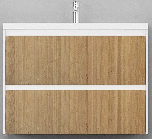 Velvex Тумба под раковину подвесная Klaufs 100 белая/дерево, 2 ящика