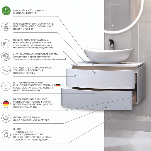 - Материал столешницы: МДФ с покрытием HPL-пластиком.
