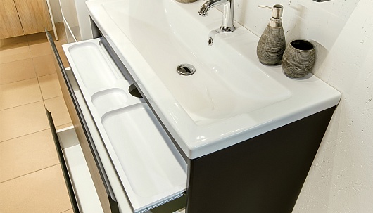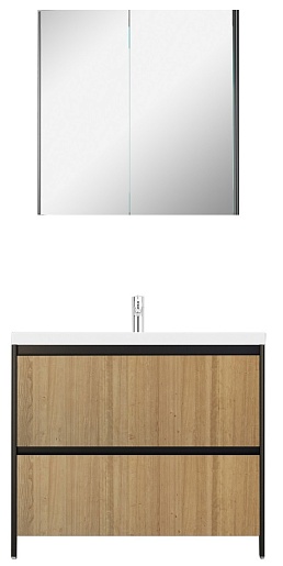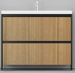 Тумба под раковину напольная Klaufs 100 черная/дерево, 2 ящика