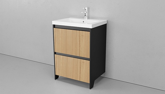 Тумба под раковину напольная Klaufs 60 черная/дерево, 1 ящик