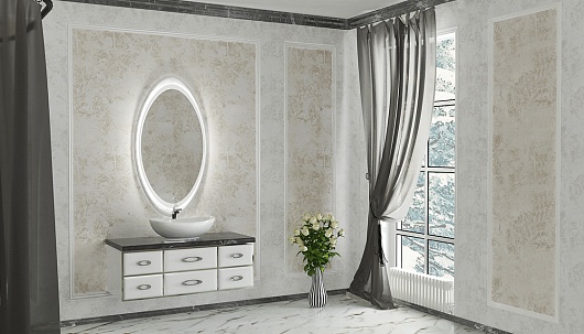 - глянцевая кромка, столешница с каплесборником и влагозащищенной обратной стороной из нордического мрамора (арт. stOLI.110-64).